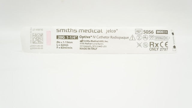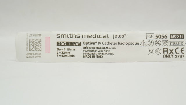- Smiths Medical 5056 Jelco Optiva IV Cath. Radiopaque 20G x 1-1/4inch 63ml/min