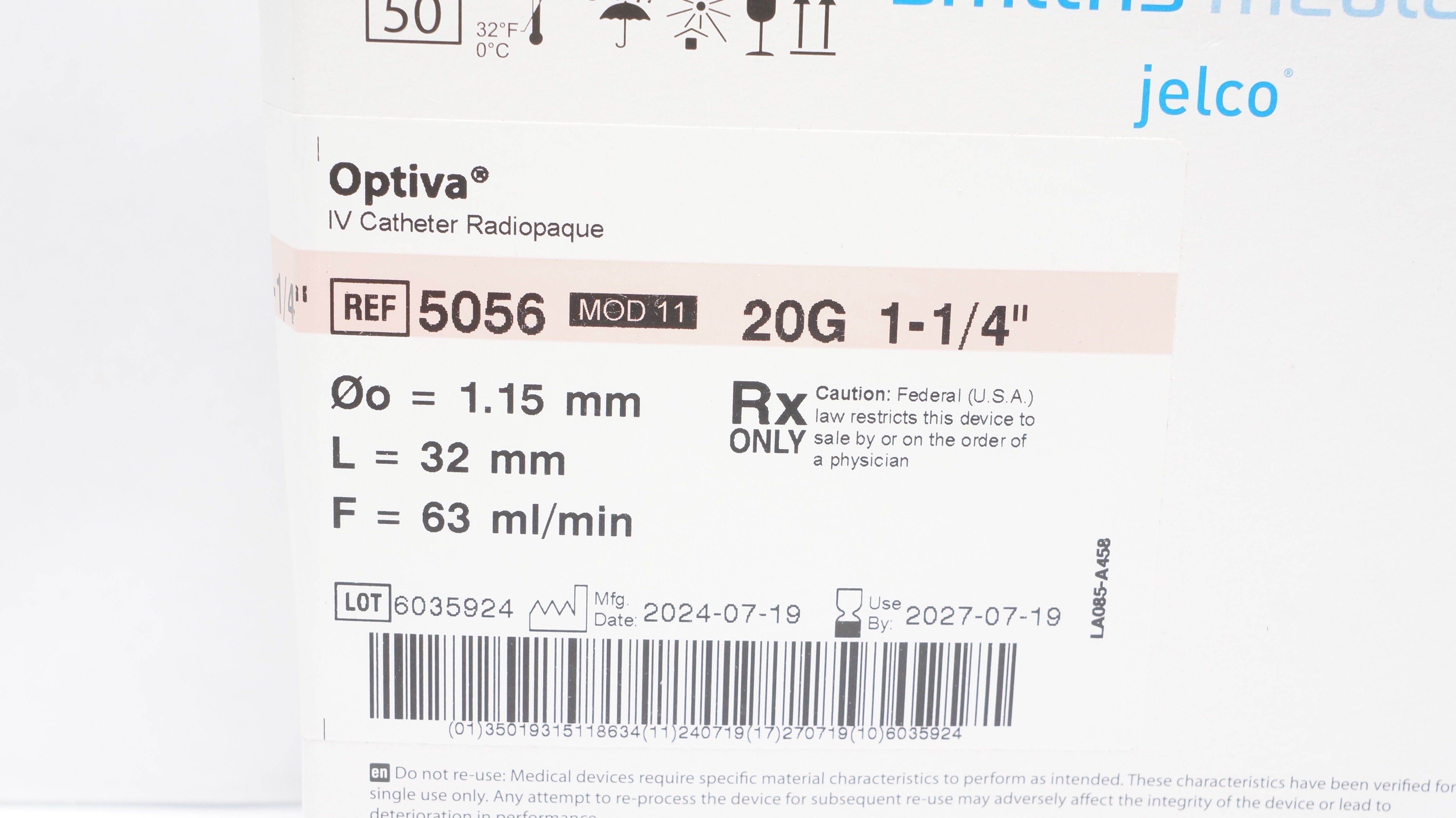 - Smiths Medical 5056 Jelco Optiva IV Cath. Radiopaque 20G x 1-1/4inch - Box of 50