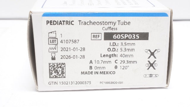 - Smiths Medical 60SP035 Bivona Pediatric Silicone Tracheostomy Tube 3.5 Cuffless