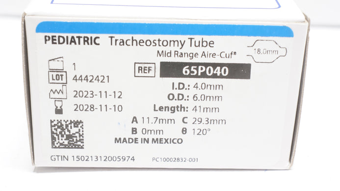 - Smiths Medical 65P040 Pediatric Tracheostomy Tube 4mm x 6mm x 41mm