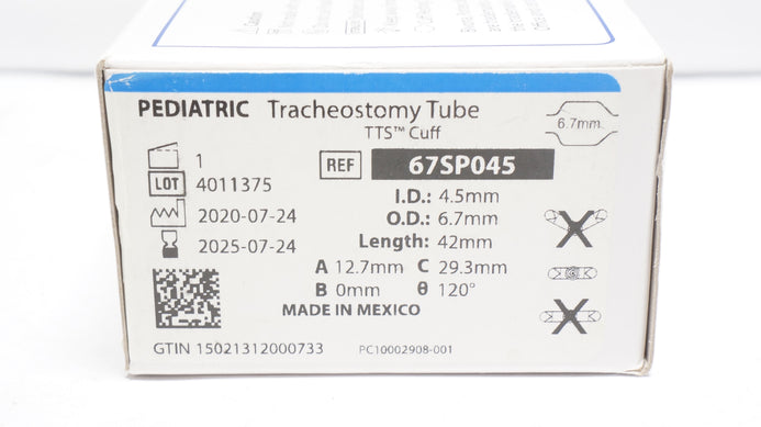 - Smiths Medical 67SP045 Pediatric Tracheostomy Tube TTS Cuff 4.5 x 6.7 x 42mm (x)