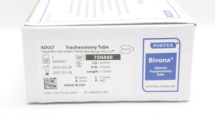 - Smiths Medical 75HA60 Portex Bivona Tracheostomy Tube 6.0 ID x 9.2OD x 110mm