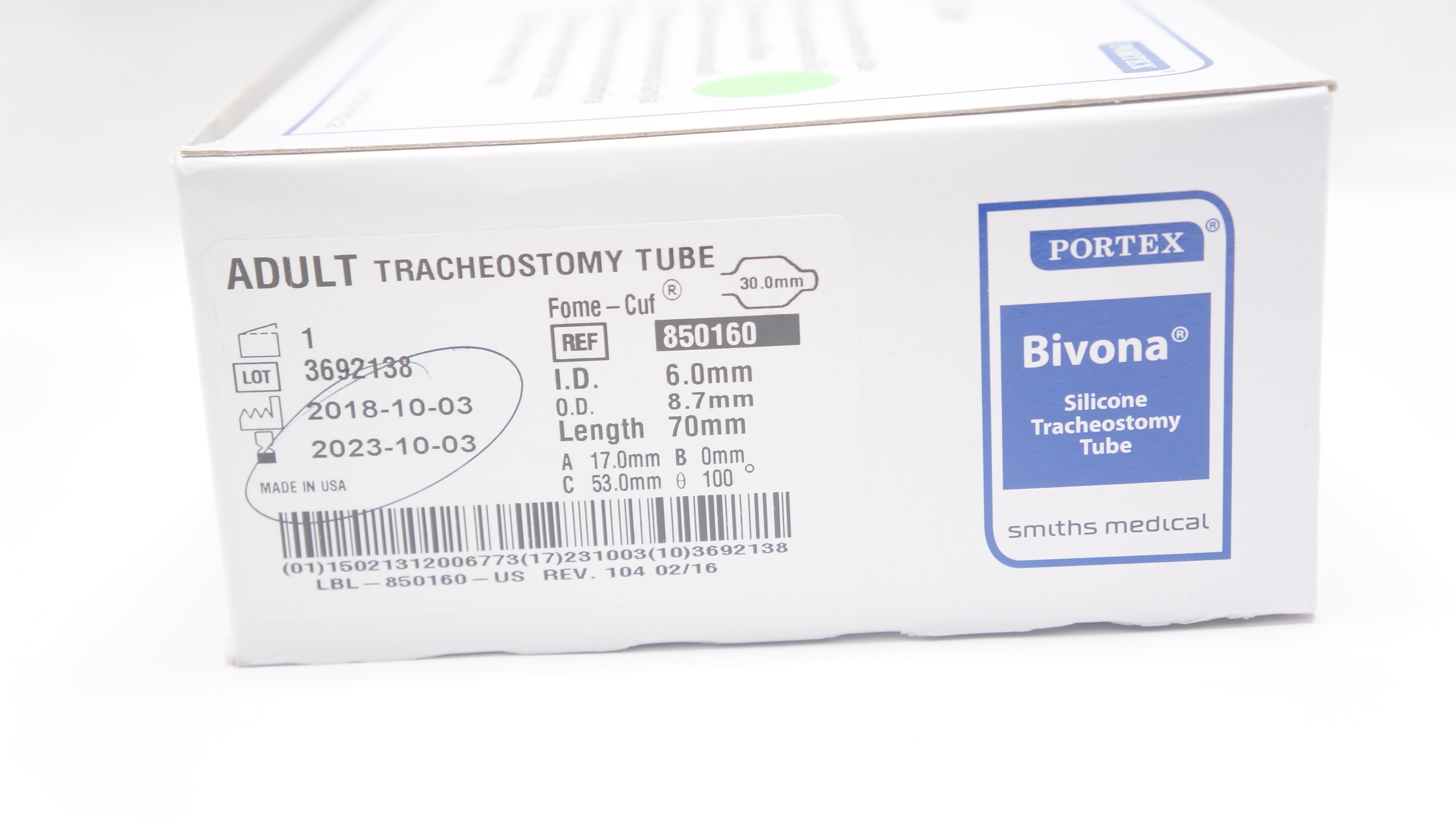 - Smiths Medical 850160 Portex Bivona Tracheostomy Tube 6.0 ID x 8.7 OD x 70mm (x)