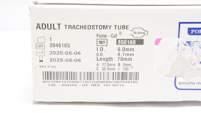 - Smiths Medical 850160 Portex Bivona Tracheostomy Tube 6.0 ID x 8.7 OD x 70mm (x)