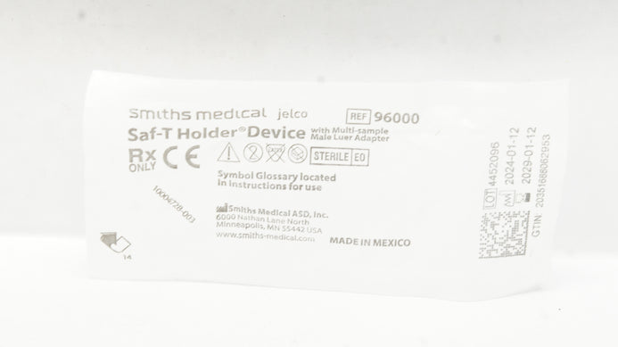- Smiths Medical 96000 Jelco Saf-T Holder Device w/Male Luer Adapter