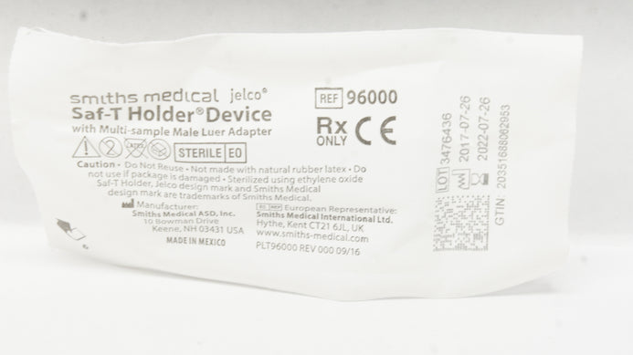 - Smiths Medical 96000 Jelco Saf-T Holder Device w/Male Luer Adapter (x)
