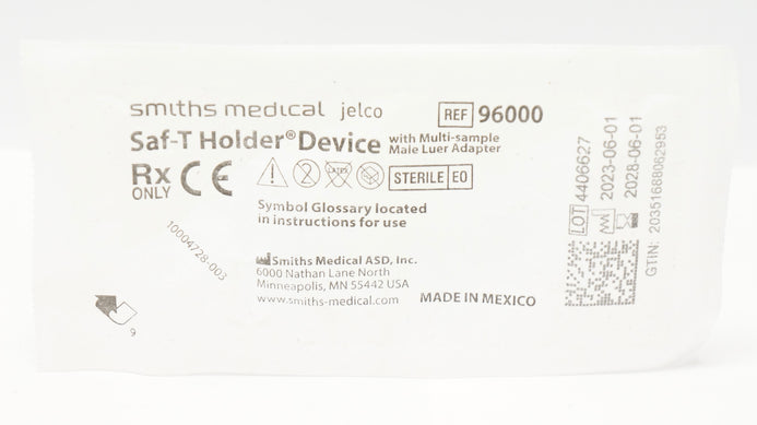 - Smiths Medical 96000 Saf-T Holder Device with Multi-Sample Male Luer Adapter