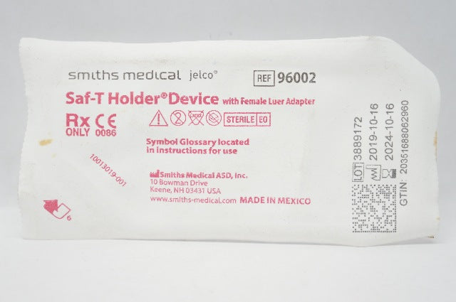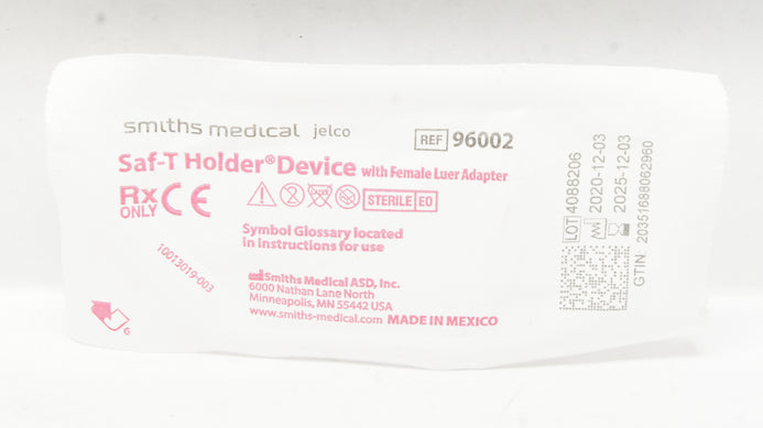 - Smiths Medical 96002 Saf-T Holder Device W/Female Luer Adapter