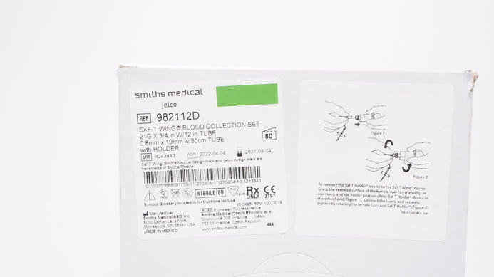 - Smiths Medical 982112D Safety-T-Wing Blood Collection Set 21G x 3/4in-Box of 50