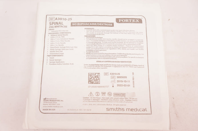 - Smiths Medical A3010-25 Portex Spinal Tray 25G - Box of 10