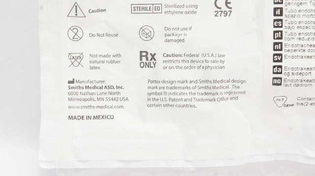 - Smiths Medical H4021PS Portex Endotracheal Tube 2.5mm ID x 3.7mm OD (x)