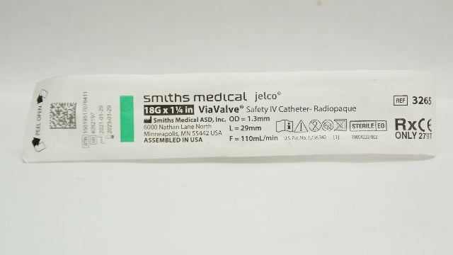 - Smiths Medical Jelco 3265 ViaValve Safety IV Cath. Radiopaque 18G x 1-1/4inch (x)