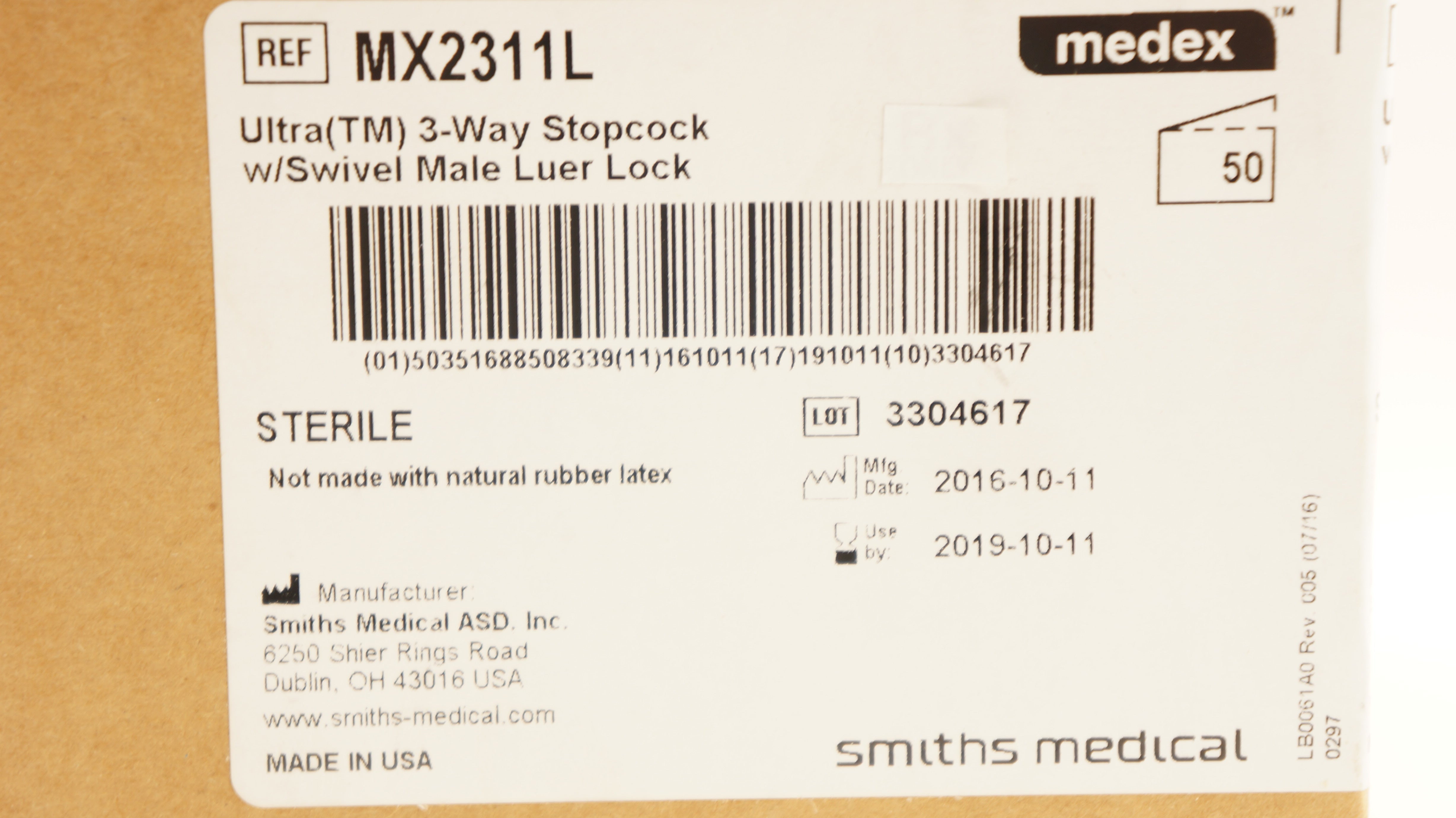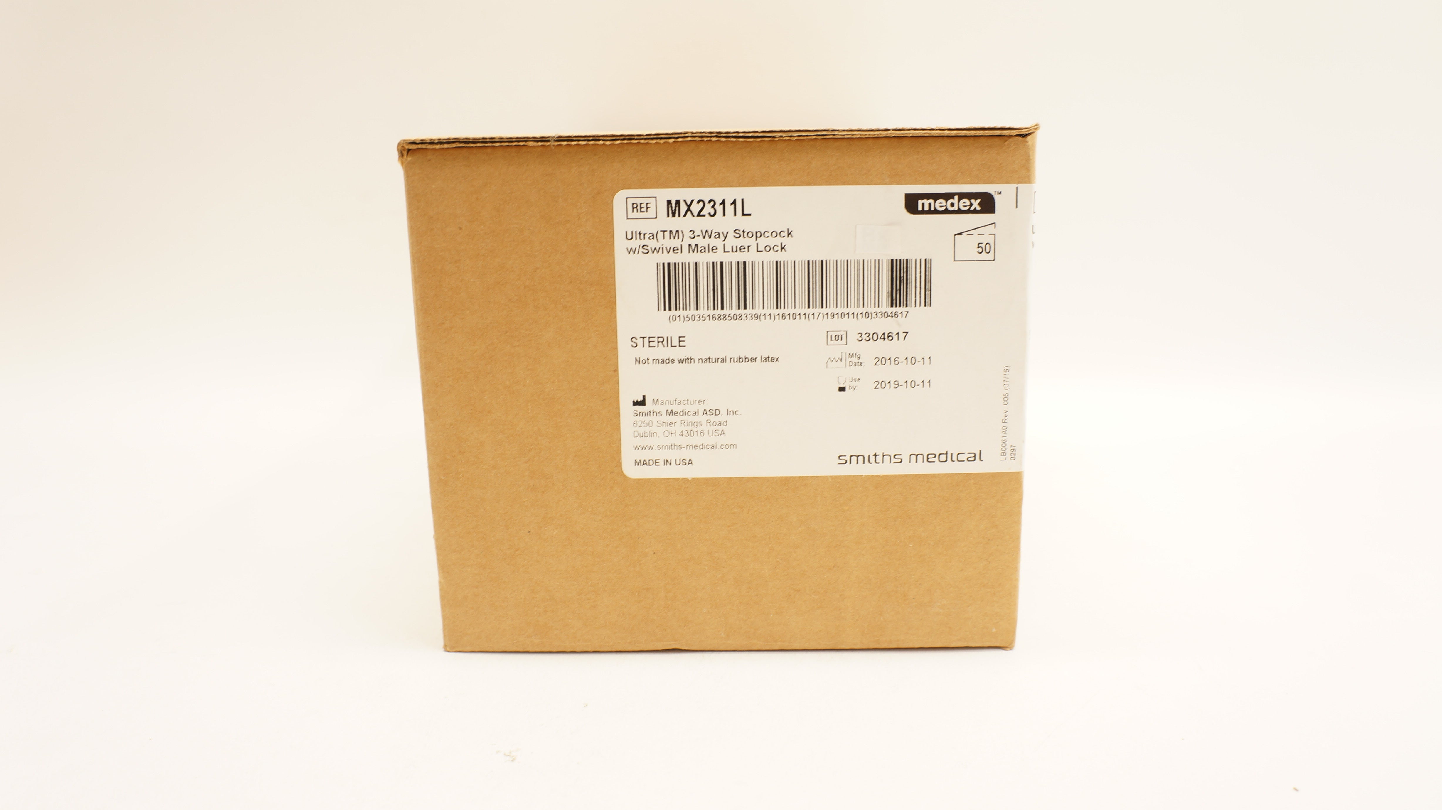 - Smiths Medical MX2311L Medex 3-Way Stopcock w/Swivel Male Luer Lock(x)-Box of 50