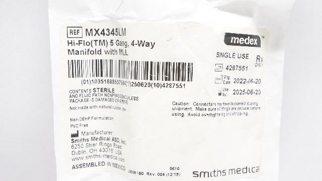 - Smiths Medical MX4345LM Medex Hi-Flo 5 Gang, 4 Way Manifold With Mll (x)
