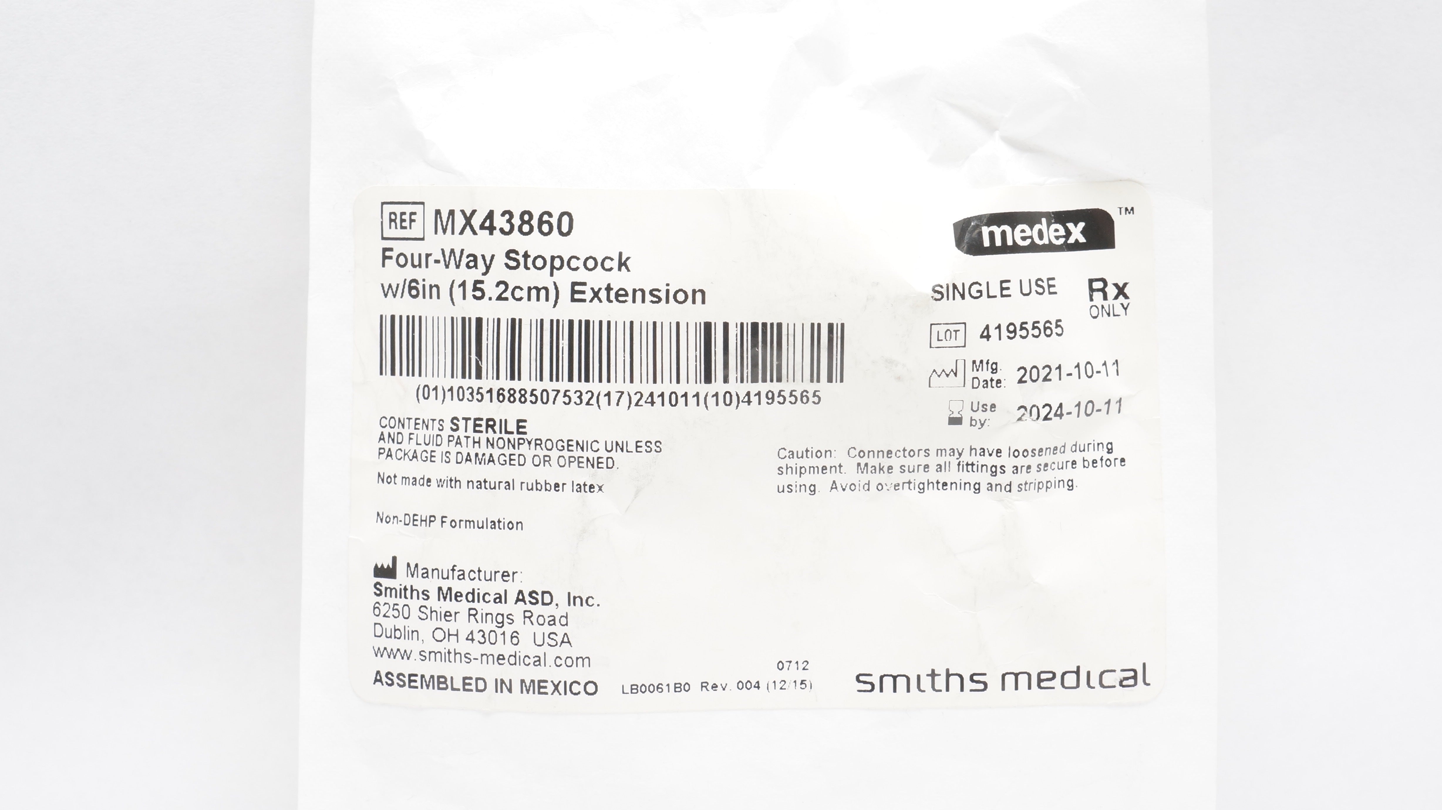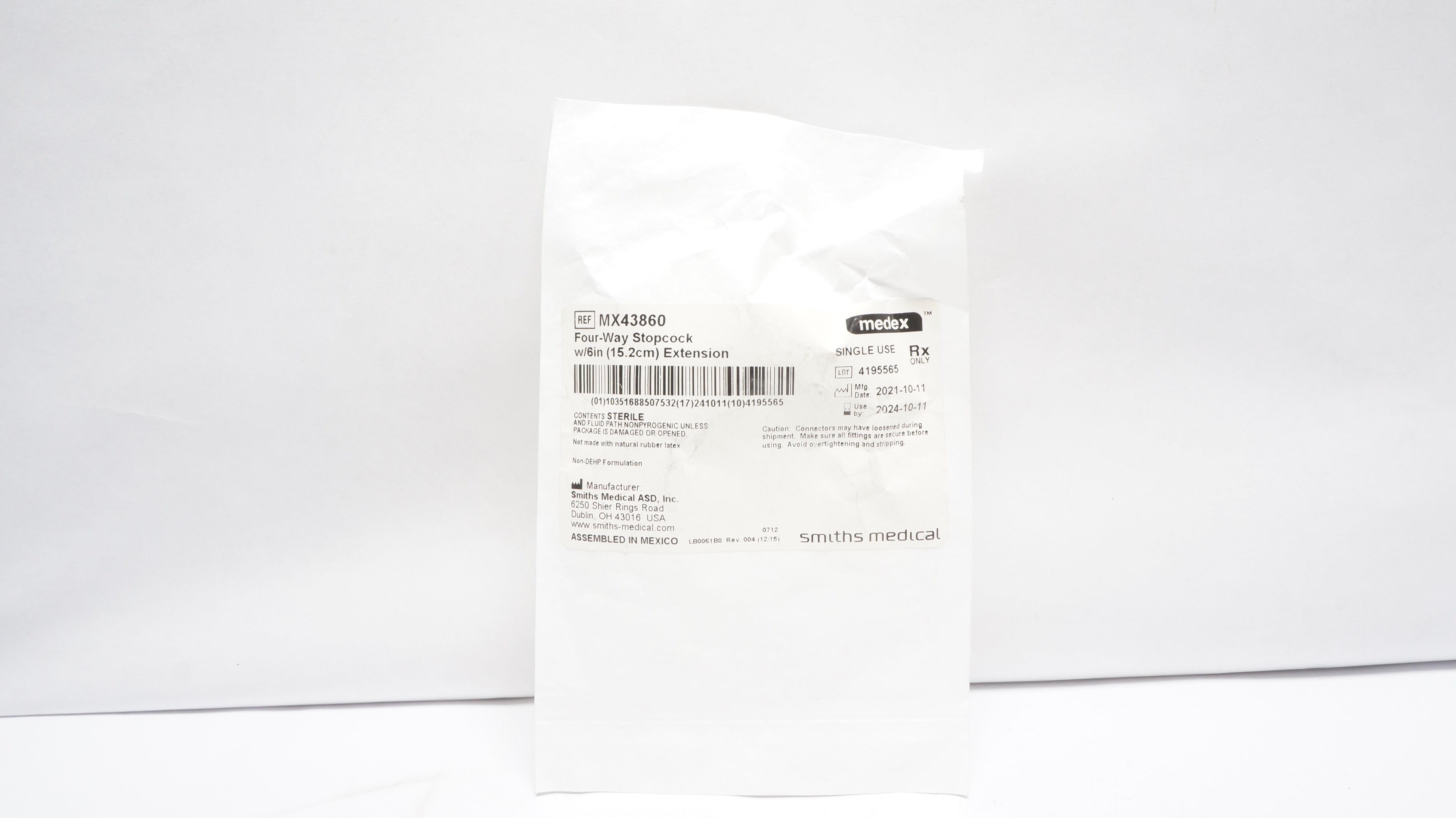 - Smiths Medical MX43860 Medex Four-Way Stopcock w/6 inch Extension (x)