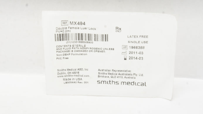 - Smiths Medical MX494 Medex Double Female Luer Lock 0.2mL (x)