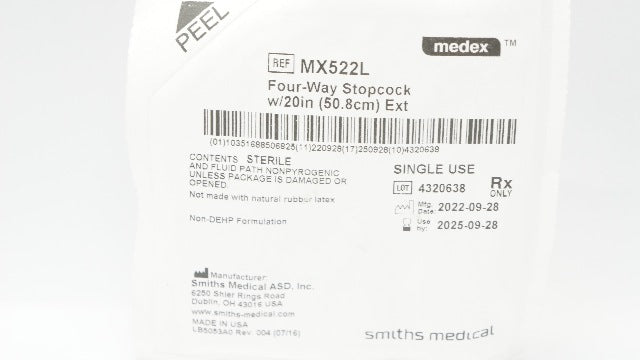 - Smiths Medical MX522L Medex Four-Way Stopcock w/20inch Extension