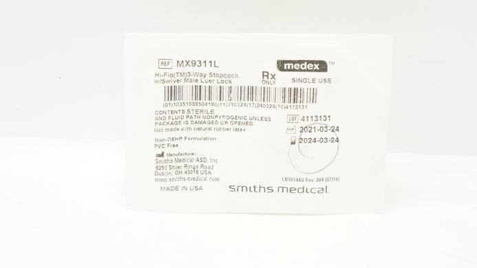 - Smiths Medical MX9311L Hi-Flow 3-Way Stopcock W/Swivel Male Luer Lock (x)