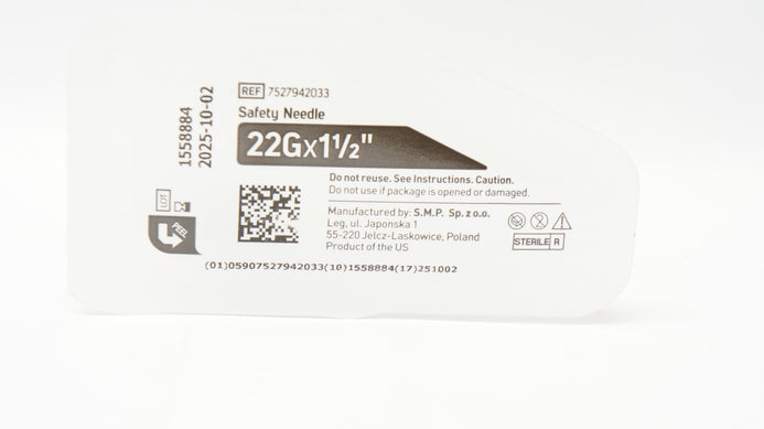 SMP 7527942033 Safety Ndle. 22G x 1-1/2inch