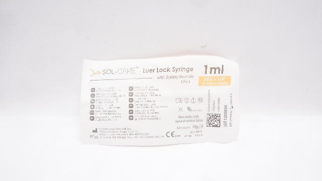 - SOL-Care 12558SN 1mL Luer Lock Syringe w/Safety Ndle. 25G x 5/8inch