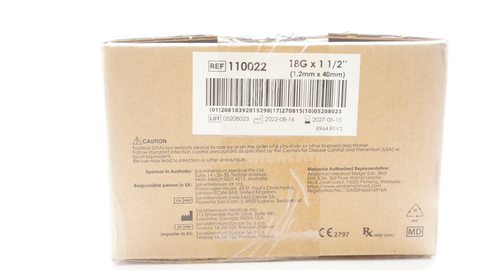 - Sol-M 110022F Blunt Fill Ndle W/5Micron Filter 18G x 1-1/2inch - Box of 1000