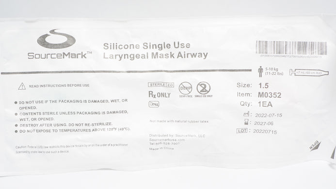 - SourceMark M0352 Silicone Laryngeal Mask Airway Size:1.5 5-10kg <7mL/60cm H2O