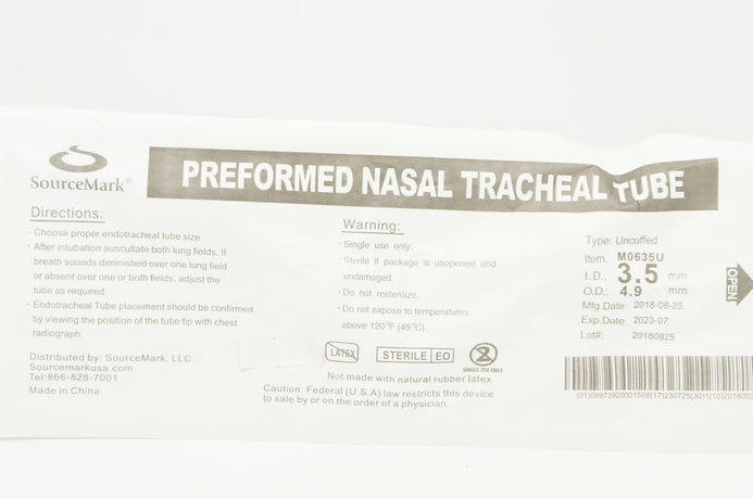 - SourceMark M0635U Preformed Nasal Tracheal Tube 3.5mm x 4.9mm