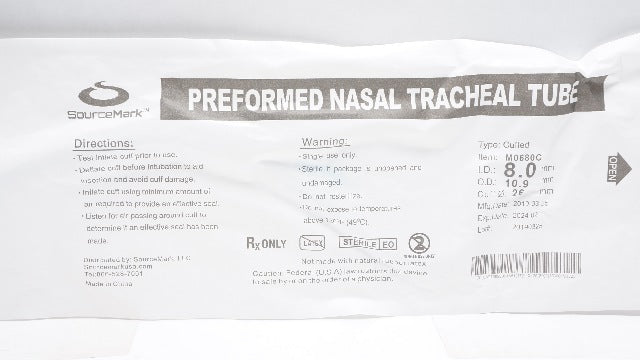 - SourceMark M0680C Preformed Nasal Tracheal Tube, Cuffed 8.0mm ID x 10.9mm OD