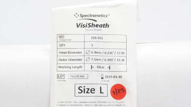 - Spectranetics 501-016 VisiSheath Dilator Sheath, L 0.236 x 0.239inch x 43cm (x)