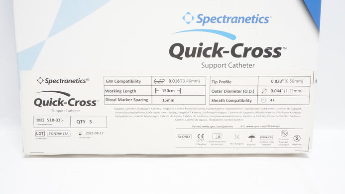 - Spectranetics 518-035 Quick-Cross Support Cath. 0.018inch x 150cm (x) - Box of 5