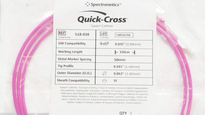- Spectranetics 518-038 Quick-Cross Support Cath. 150cm x 0.035inch x 5F (x)