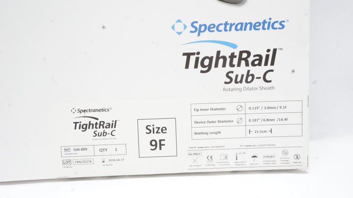 - Spectranetics 560-009 TightRail Sub-C, Rotating Dilator Sheath, 9F (x)