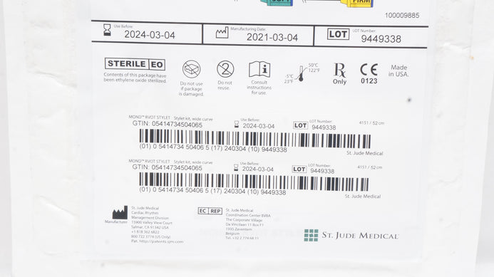 - St.Jude Medical 4151 MOND RVOT Stylet Kit, Wide Curve 52cm (x)