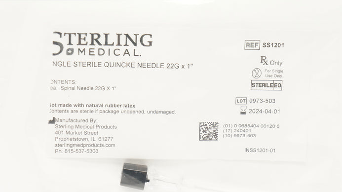 - Sterling Medical SS1201 Single Sterile Quincke Spinal Ndle 1inch (x)