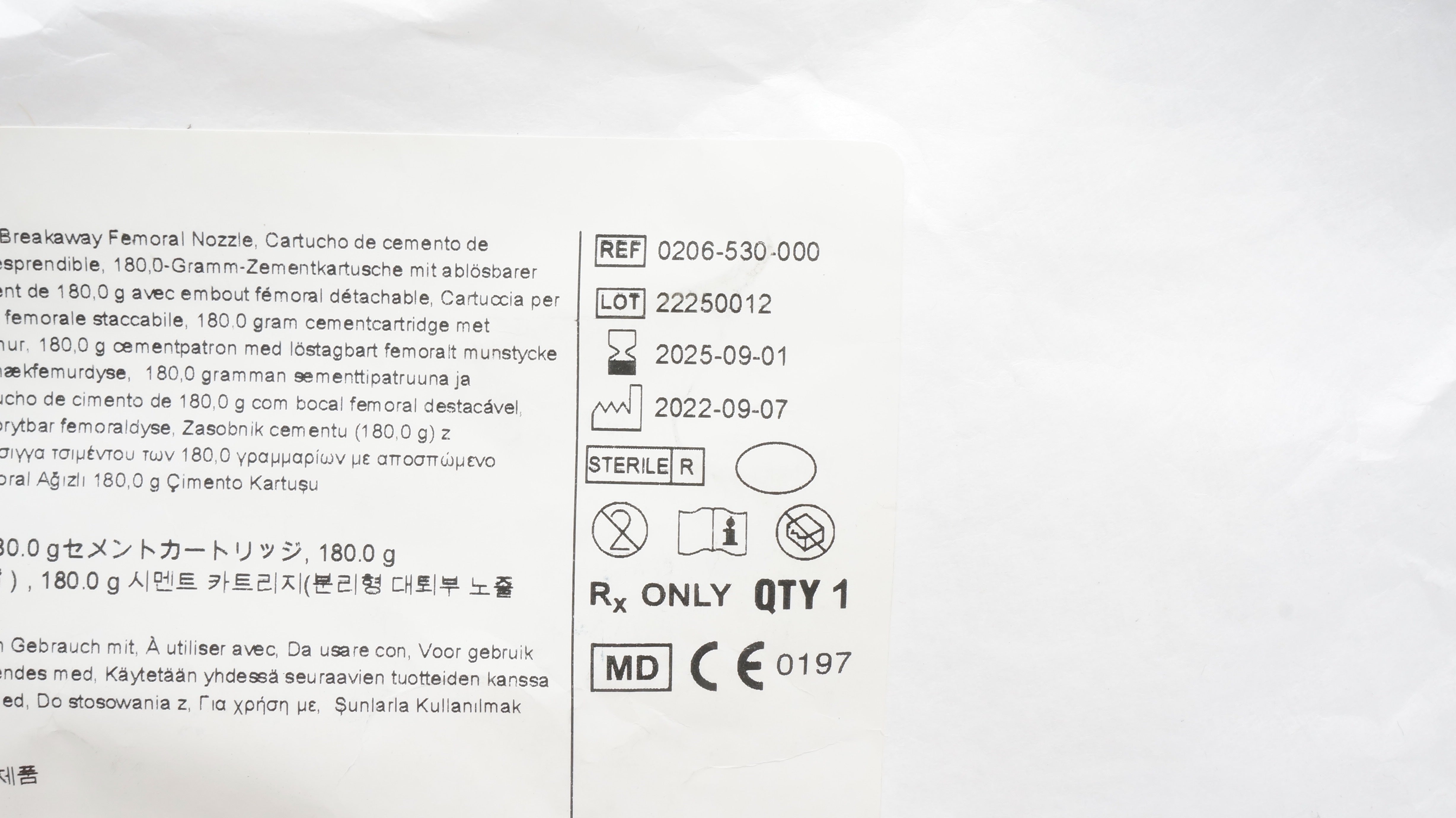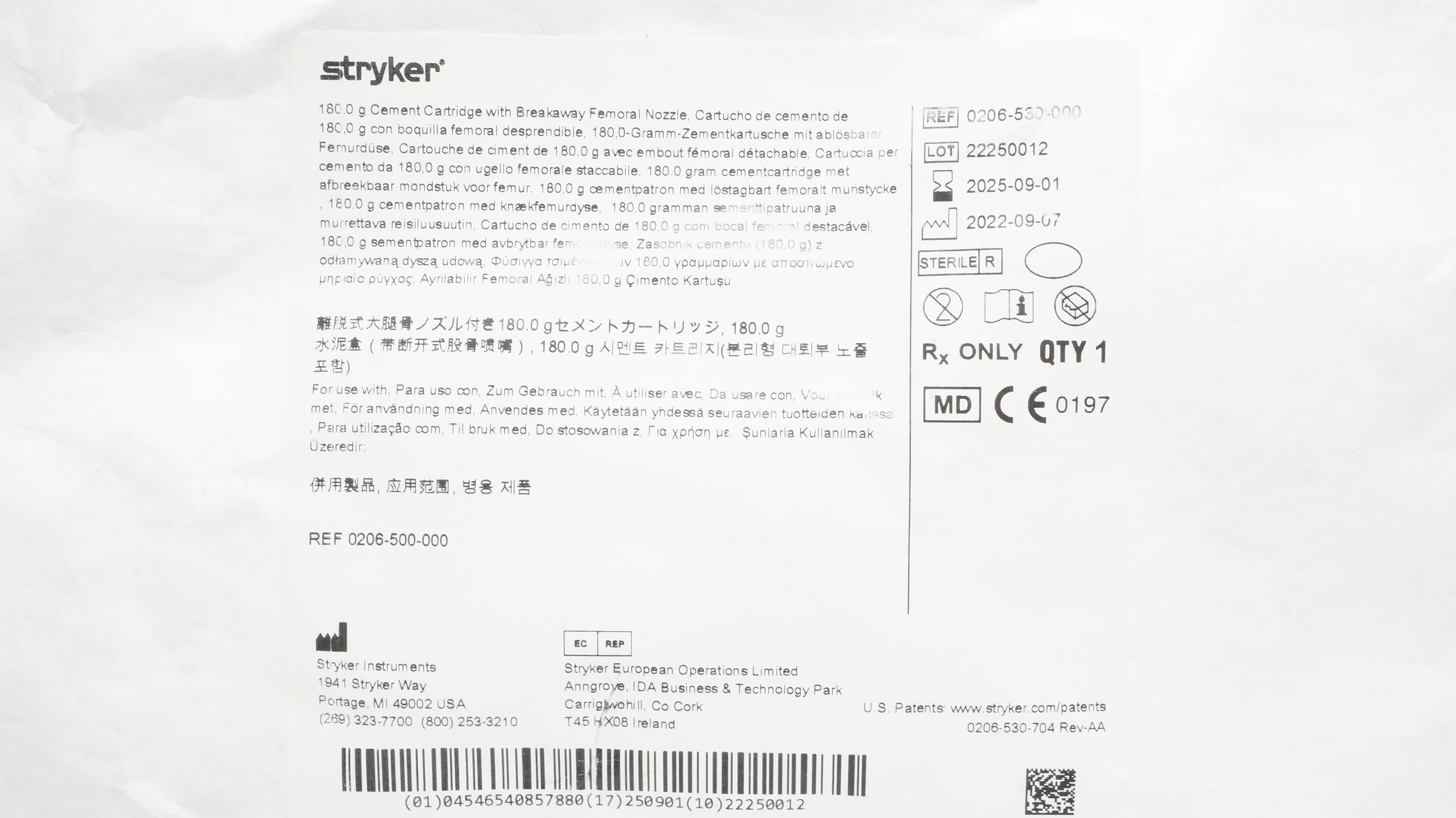 - Stryker 0206-530-000 180.0G Cement Cartridge W/Breakway Femoral Nozzle (x)