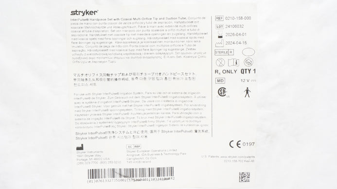 - Stryker 0210-158-000 Interpulse Handpiece Set with Coaxial Multi-Orifice Tip