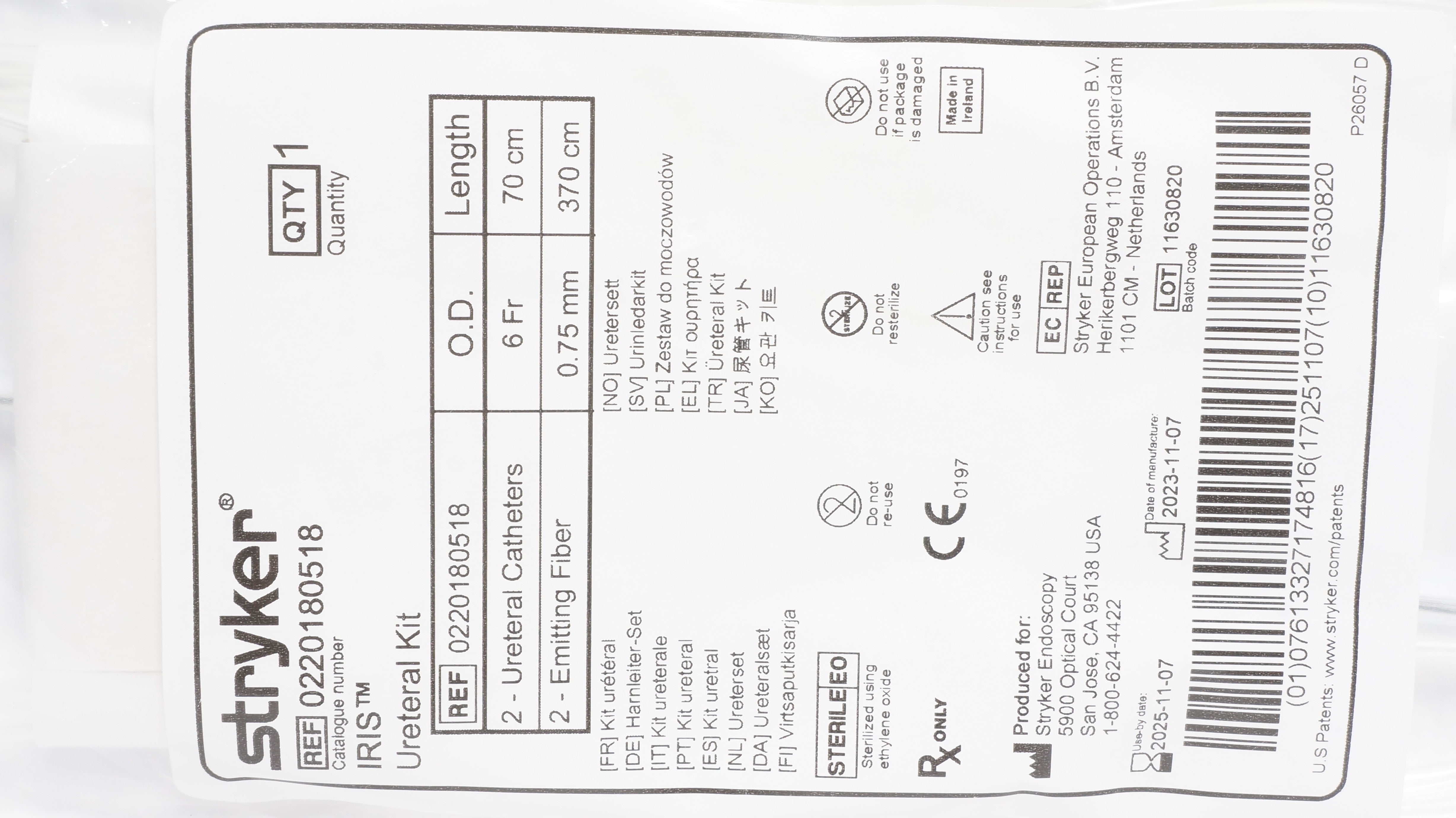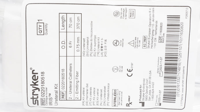 - Stryker 0220180518 IRIS Ureteral Kit 6Fr x 70cm (x)