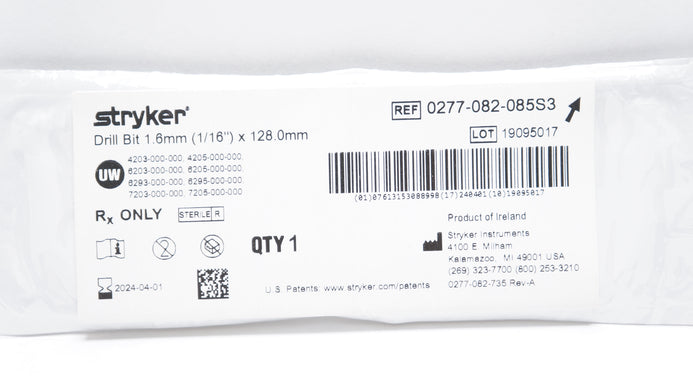 - Stryker 0277-082-085S3 Drill Bit 1/16inch x 128.0mm (x)