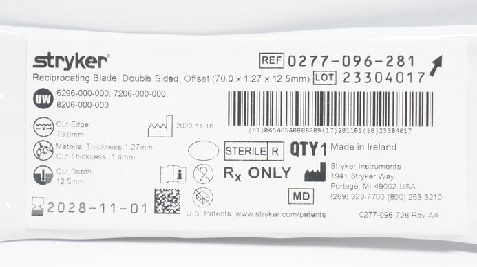 - Stryker 0277-096-281 Reciprocating Blade,Double Sided,Offset