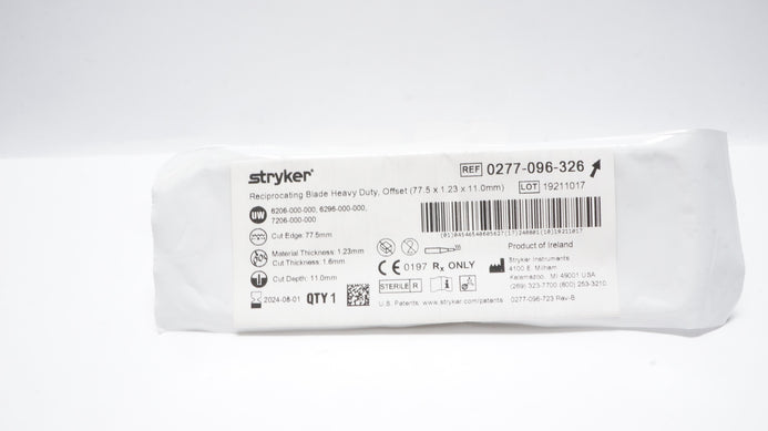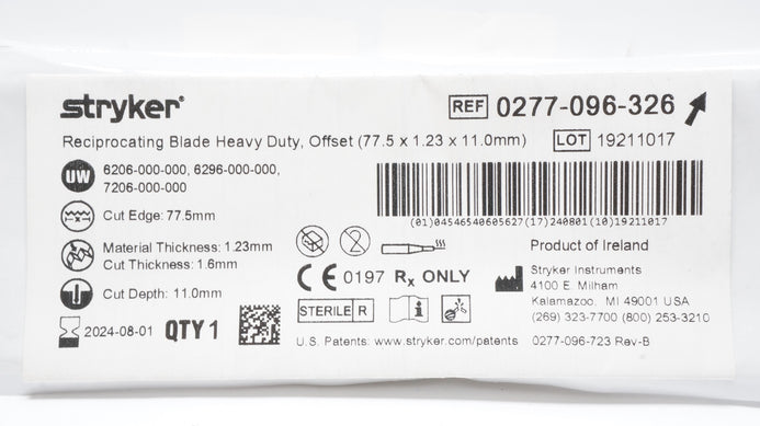 - Stryker 0277-096-326 Reciprocatintg Blade Heavy Duty Offset 77.5x1.23x11.0mm(x)