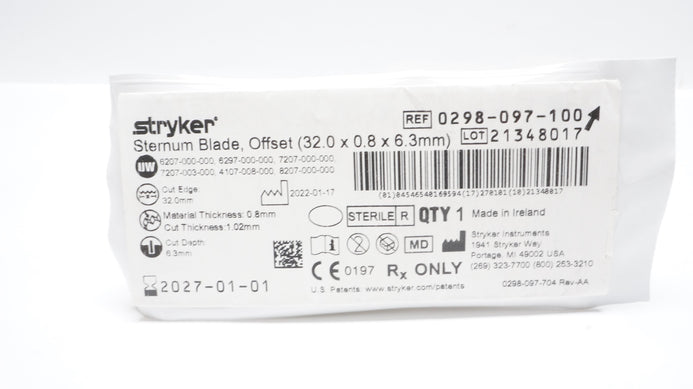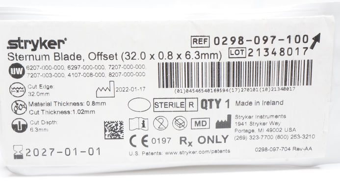 - Stryker 0298-097-100 Sternum Blade Offset 32.0 x 0.8 x 6.3mm