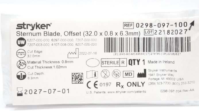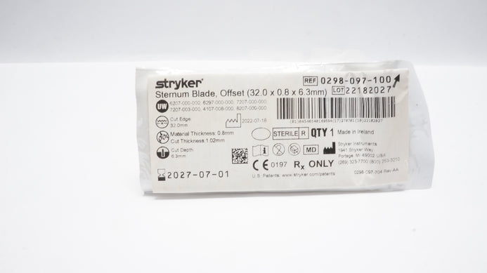- Stryker 0298-097-100 Sternum Blade Offset 32.0 x 0.8 x 6.3mm
