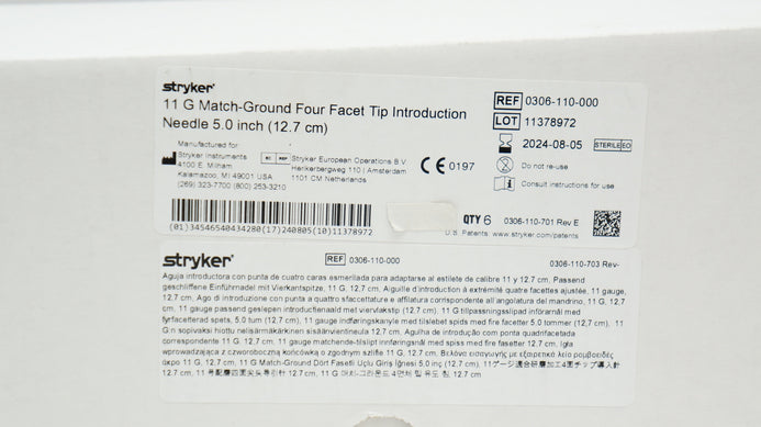 - Stryker 0306-110-000 11G Match-Ground Four Facet Tip Introduction Ndle 5.0in