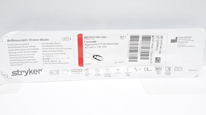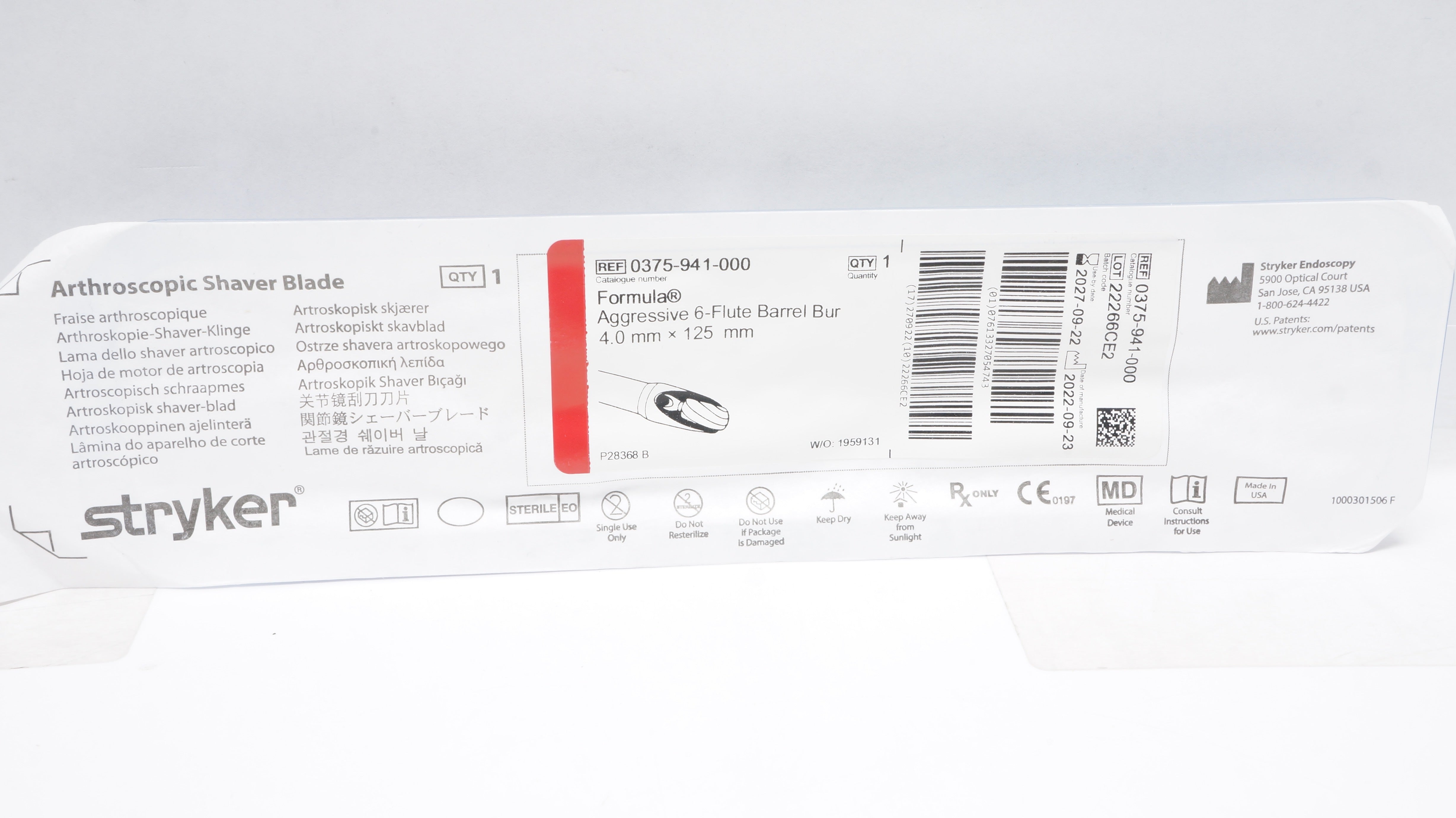 - Stryker 0375-941-000 Formula Aggressive 6-Flute Barrel Bur 4.0mm x 125mm