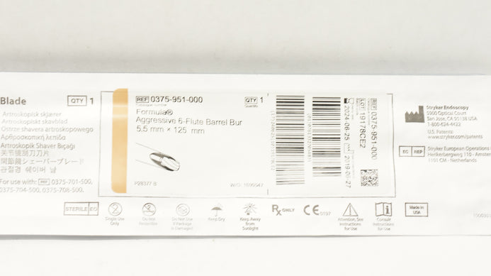 - Stryker 0375-951-000 Formula Arthroscopy Blade Barrel Bur 6-Flute 5.5 x 125mm(x)