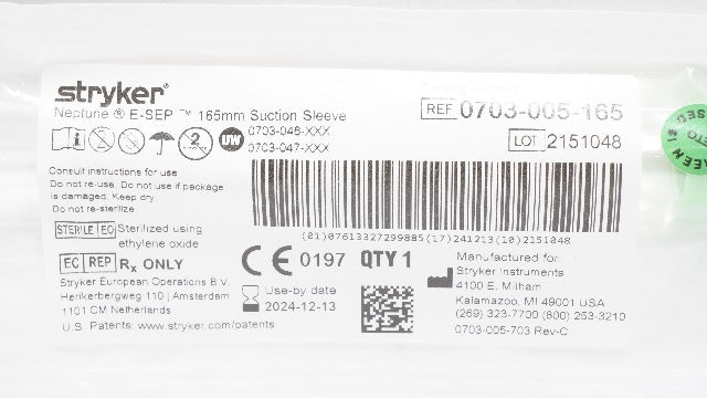 - Stryker 0703-005-165 Neptune E-SEP 165mm Suction Sleeve (x)