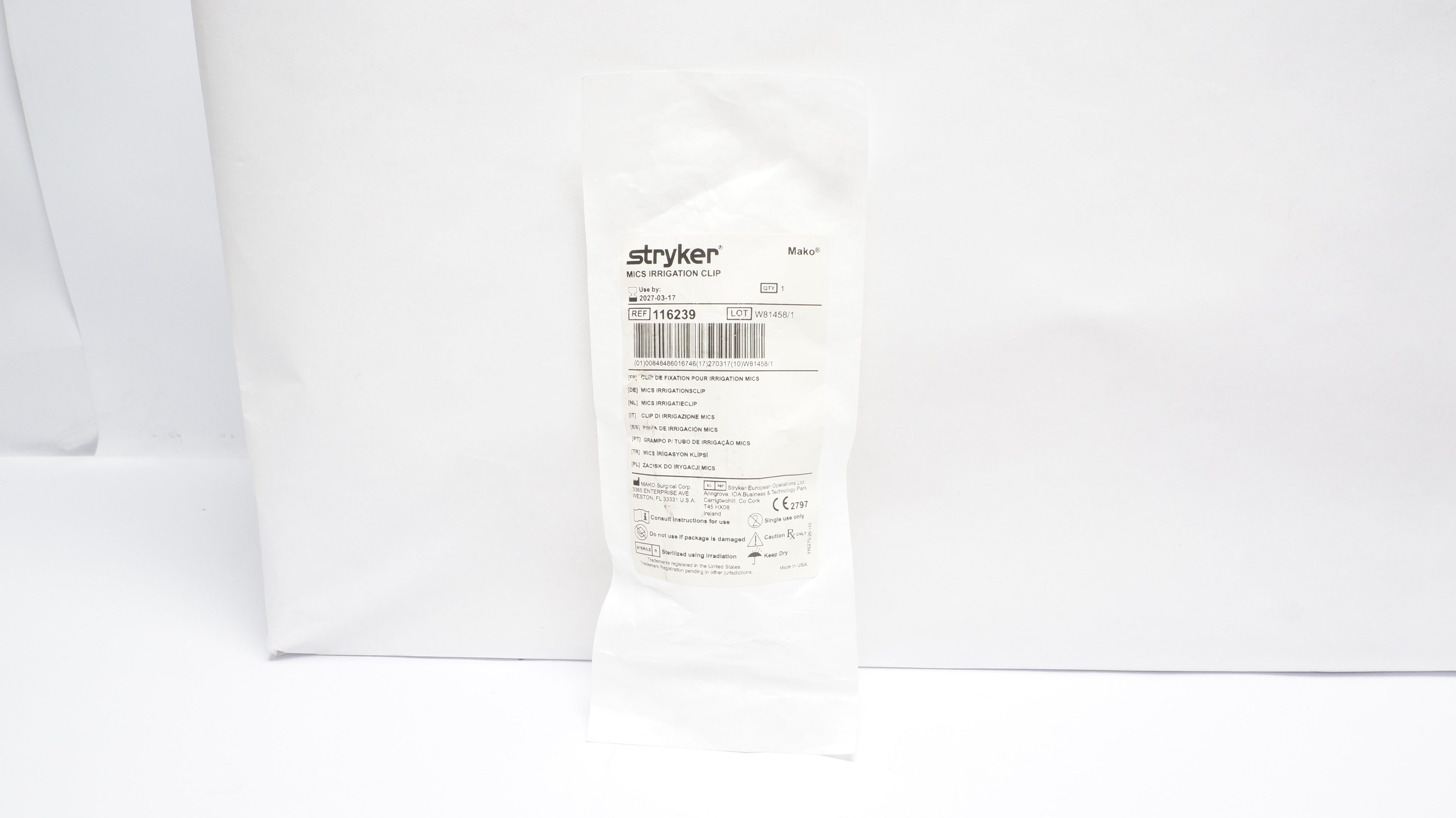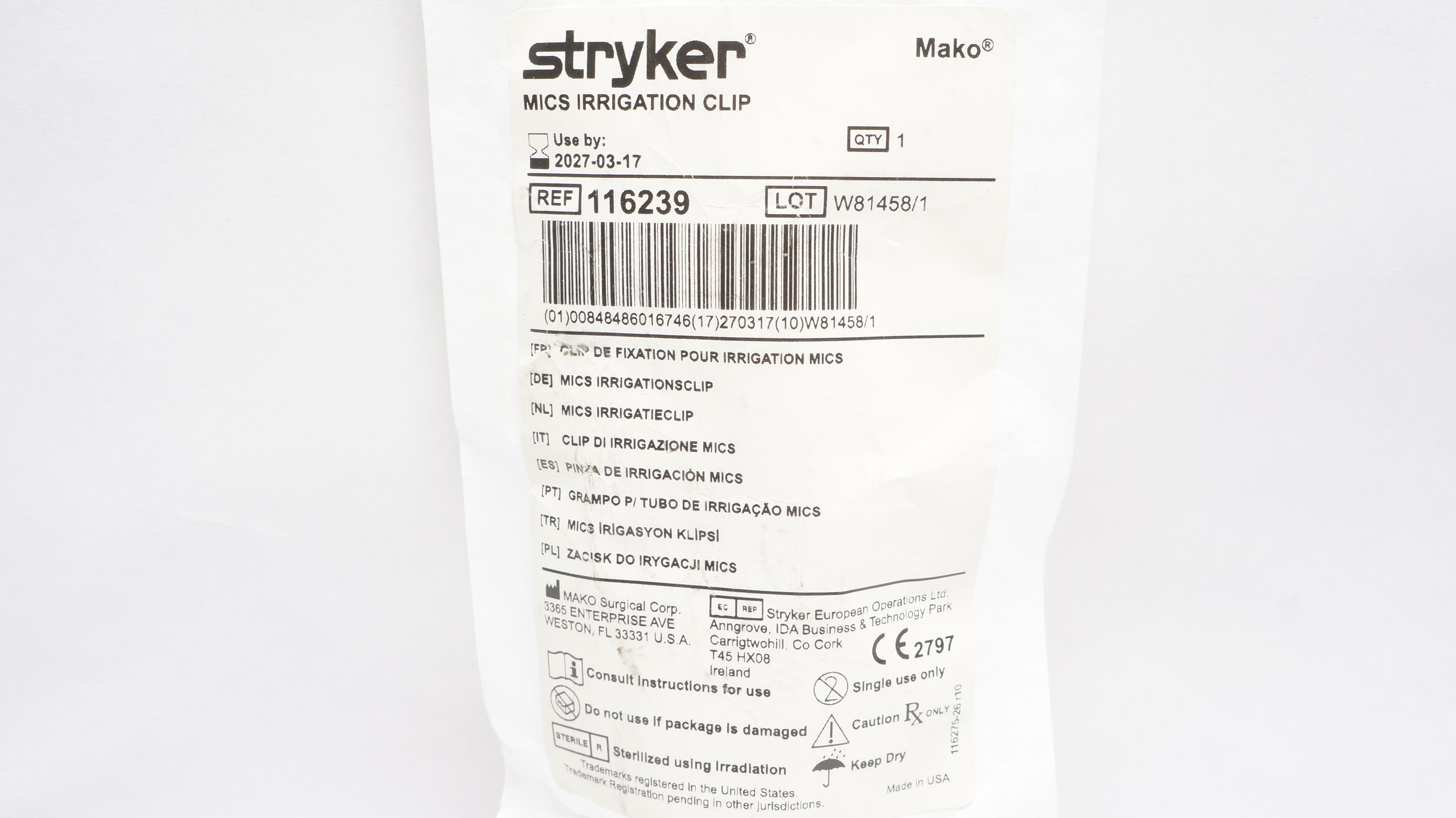 - Stryker 116239 Mako MICS Irrigation Clip