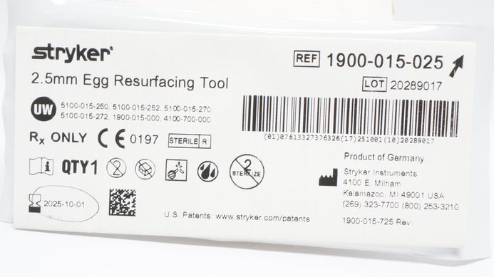 - Stryker 1900-015-025 Egg Resurfacing Tool 2.5mm (x)