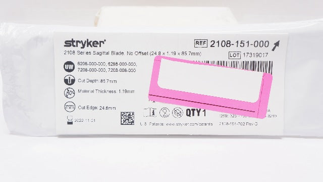 - Stryker 2108-151-000 2108 Series Sagittal Blade 24.8 x 1.19 x 85.7mm (x)
