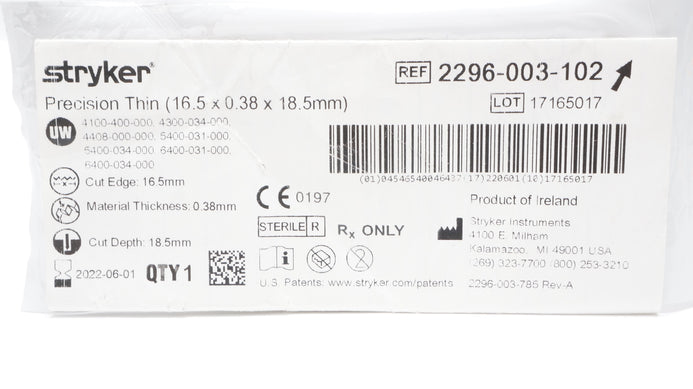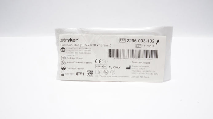 - Stryker 2296-003-102 Precision Thin Blade 16.5 x 0.38 x 18.5mm (x)